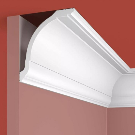 Карниз для скрытого освещения Cosca Decor изготовлен из ударопрочного экополимера – это композит с добавлением светостабилизатора. Материал изделия уже огрунтован в своей массе, благодаря чему его можно не окрашивать. Он сохранит белый цвет и не пожелтеет со временем. Красить также легко, с экономией на краске, так как грунтовка уже есть!